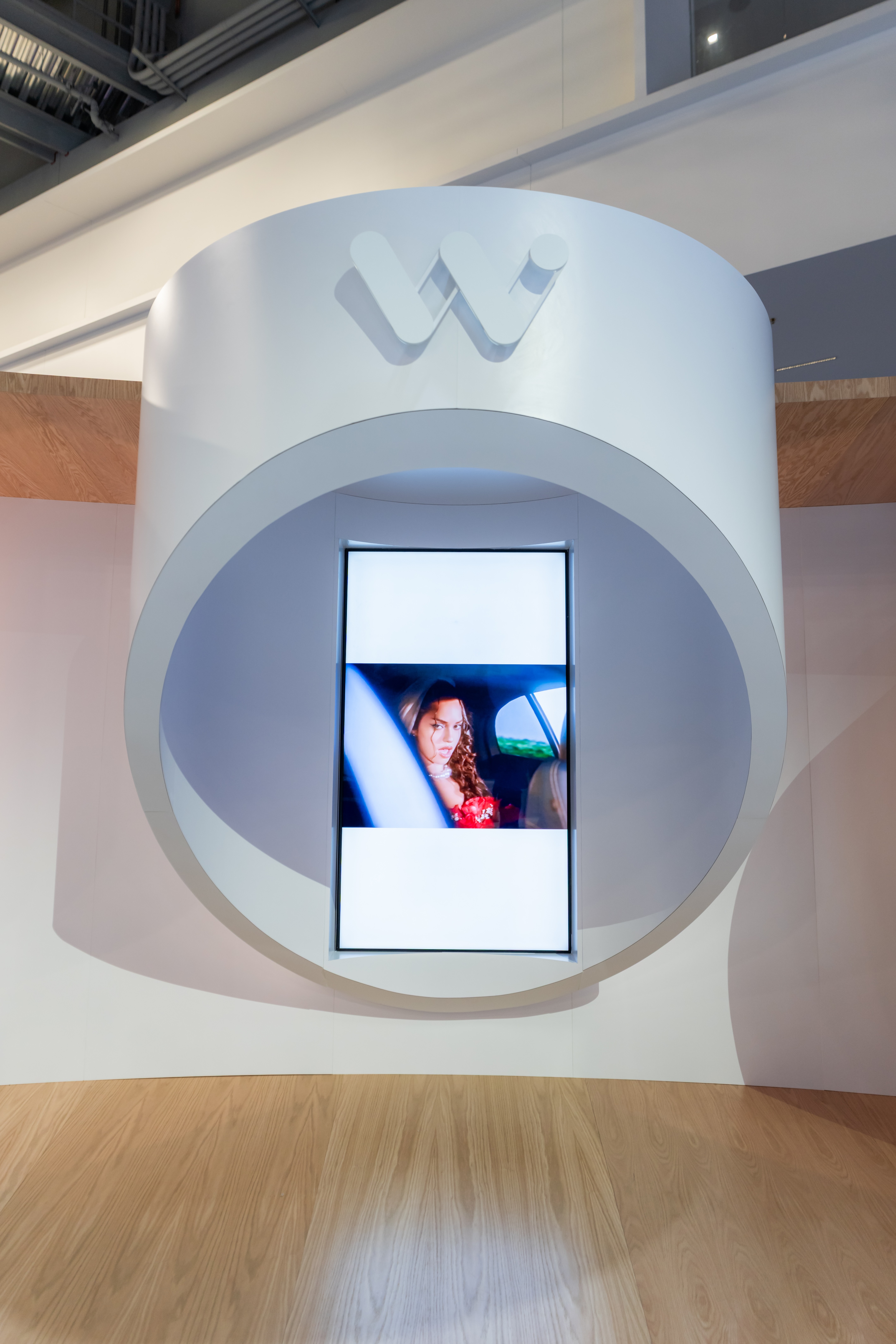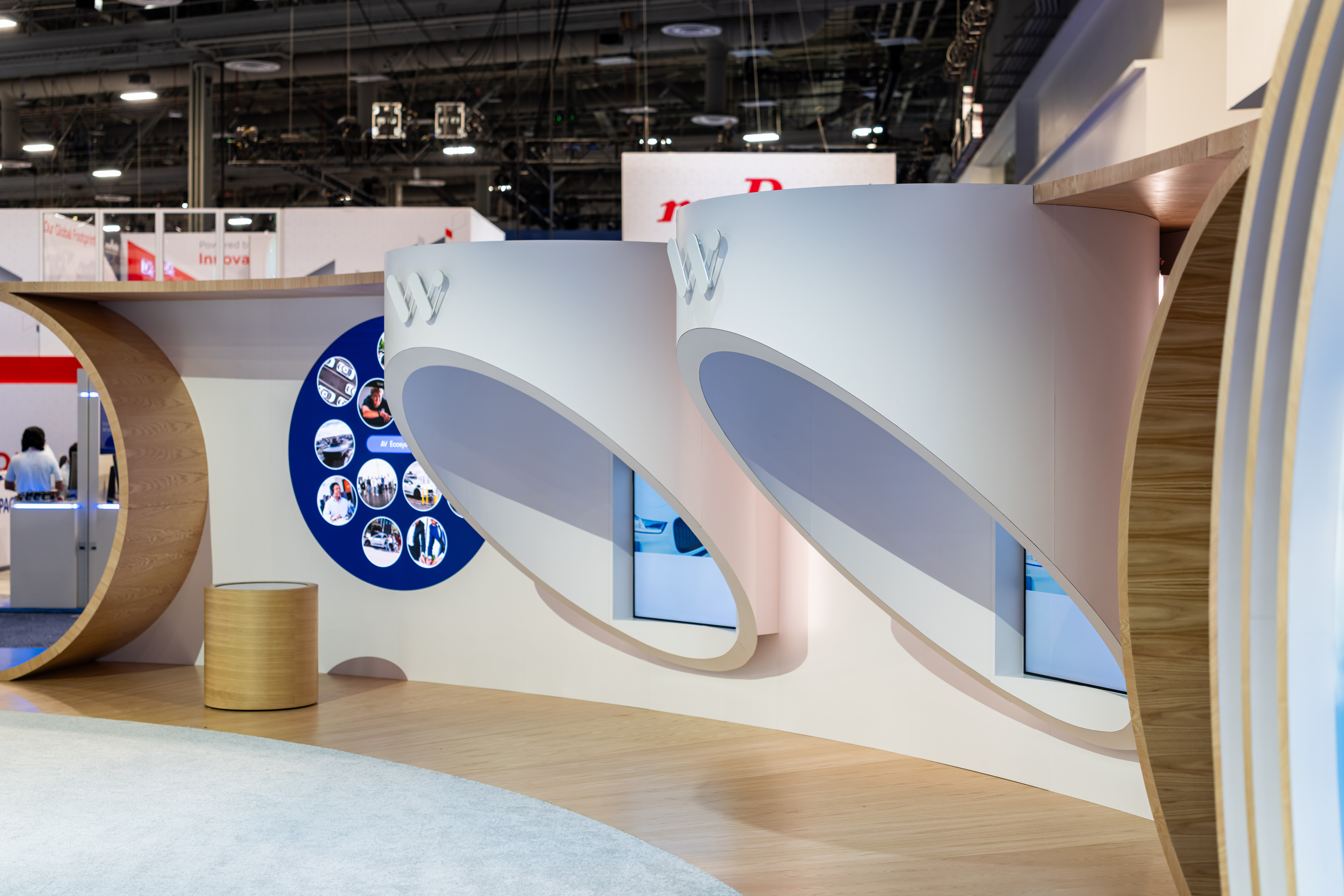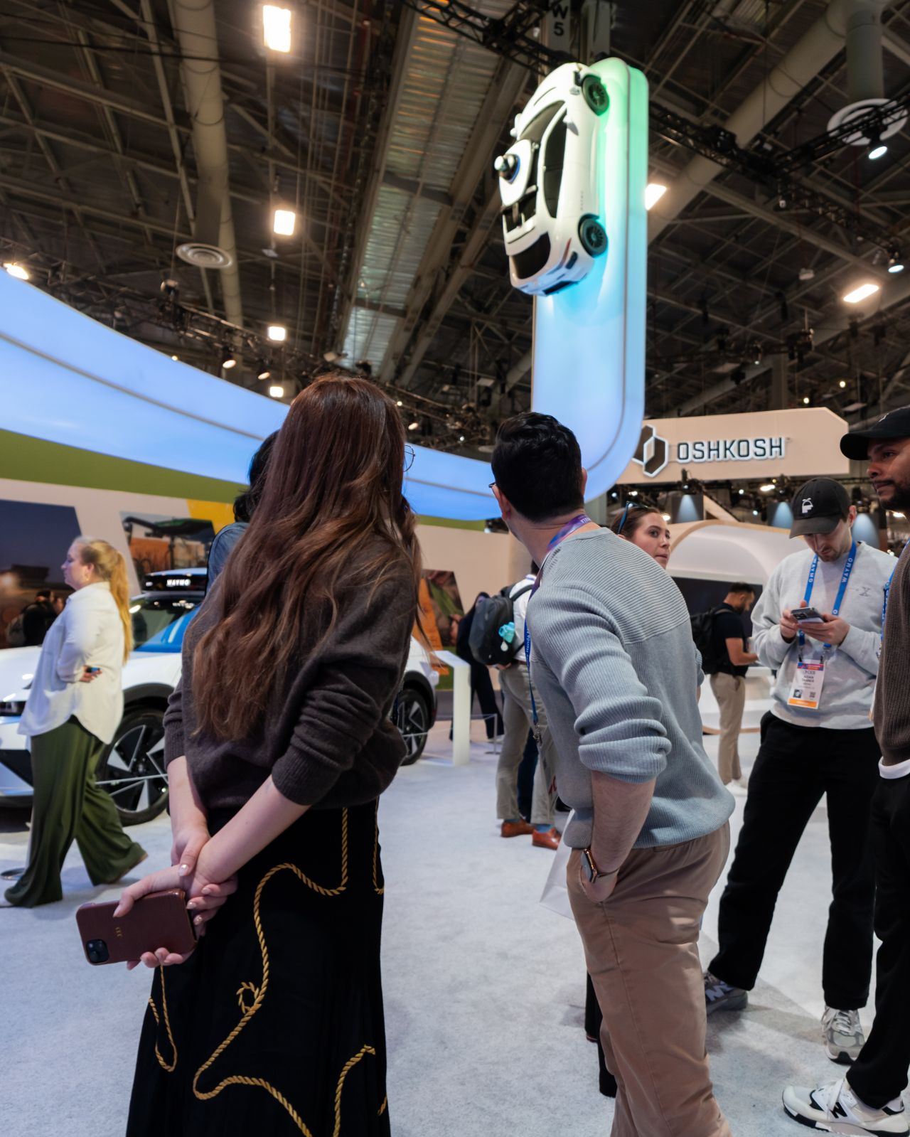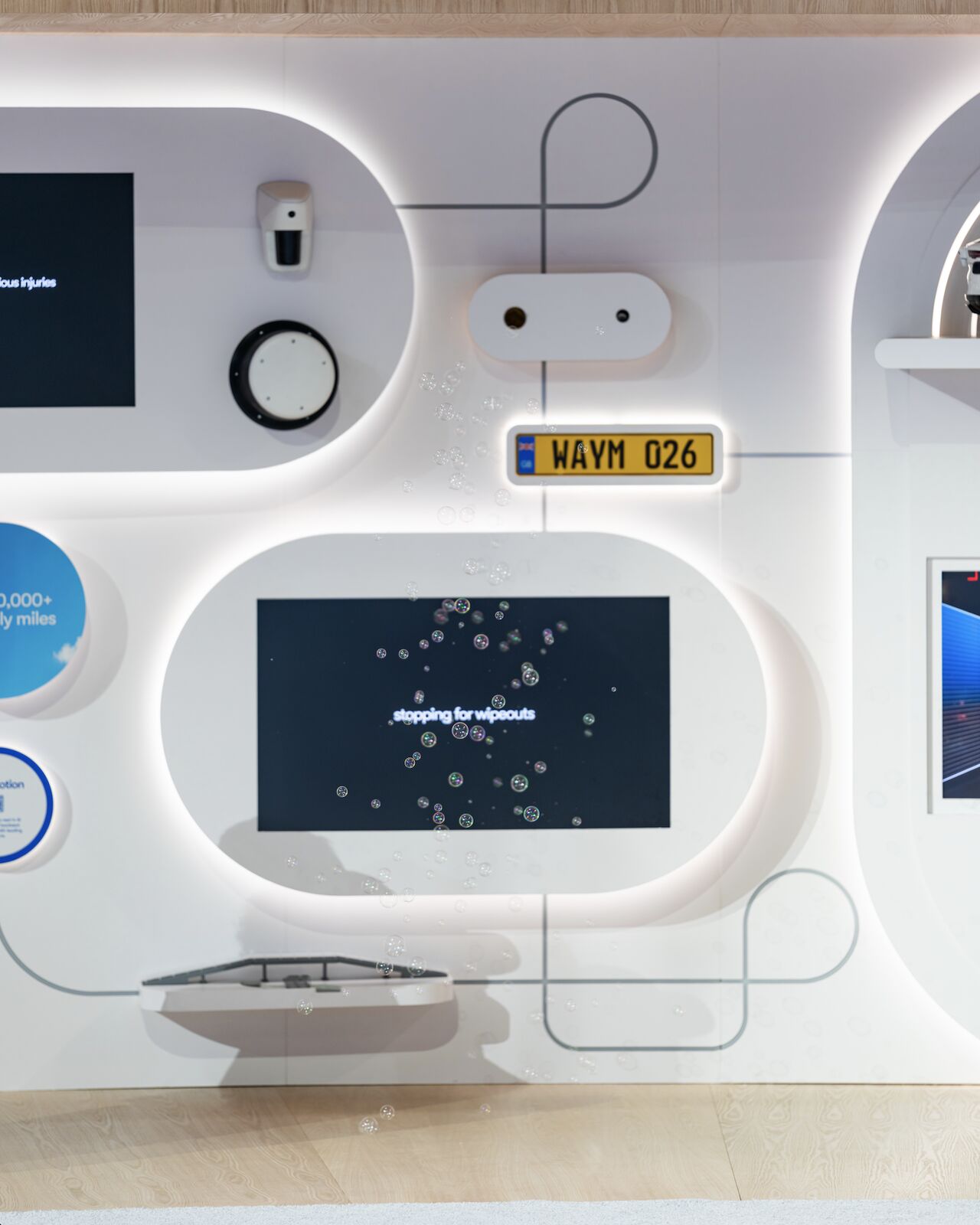 So we built something unmissable. A replica Waymo floating overhead like it had already taken off. A rotating "W" anchoring the center. Sight lines that pulled you in from every direction, no matter which way you were walking.